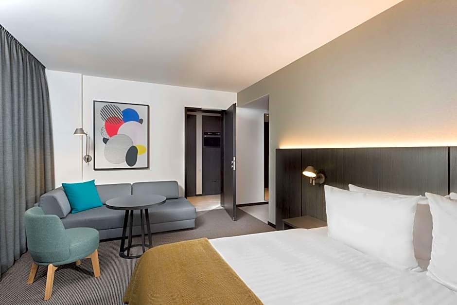 This apartment has a seating area, a separate bedroom and a fully equipped kitchen.